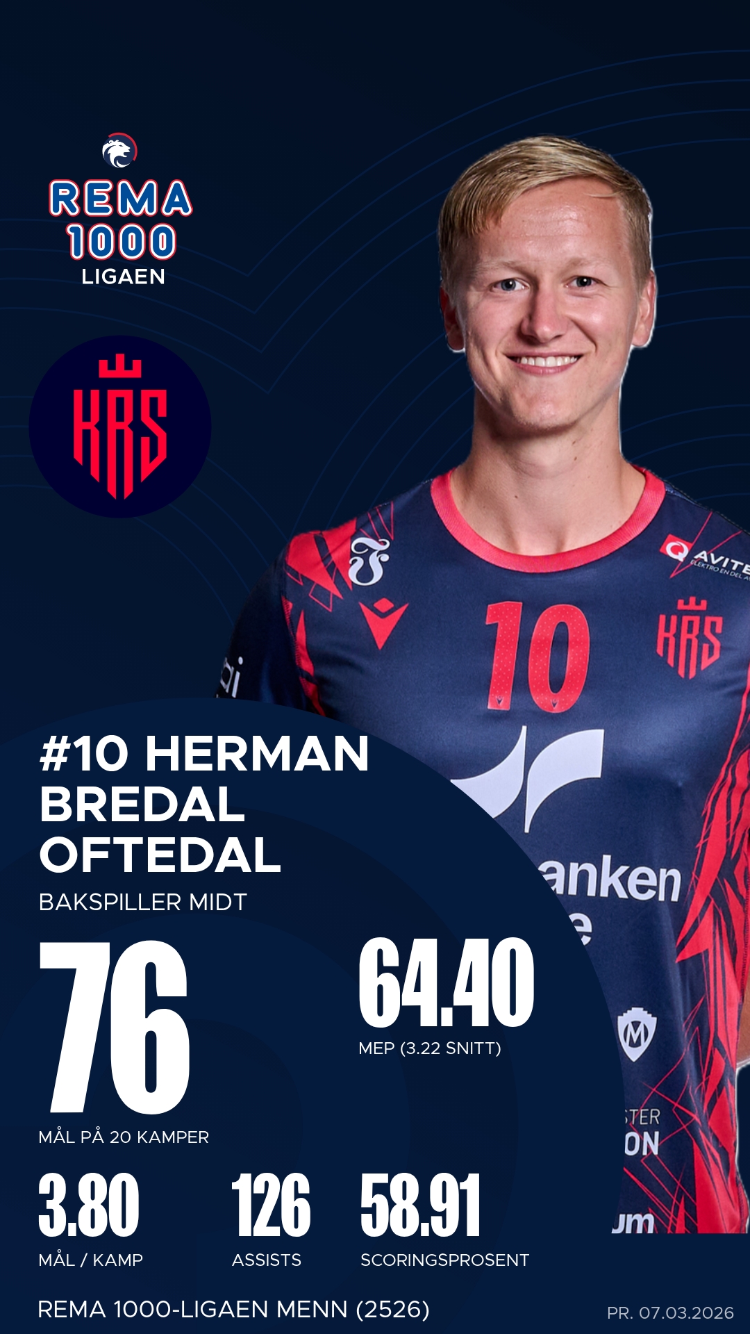KRS har flere spillere som har levert en solid presentasjon denne sesongen, og spillere som har hatt positiv utvikling. Blant annet har kantspiller Eric Nicolay Skonhoft Jensen imponert de siste kampene, og forrige kamp mot Bækkelaget scoret han imponerende 11/11 mål. På linjen står også Lars Eirik Larsen og er en av ligaens beste linjespillere. Han imponerer i både angrepsspill, og får han ballen setter han den som regel i nettet. Bakspiller Henrik Øygarden er også en viktig spiller i angrepsspillet, med både målfarlighet og presise pasninger som åpner forsvar. I tillegg har playmakeren Herman Bredal Oftedal vært en avgjørende bidragsyter med sin spilleforståelse og evne til å skape rom for medspillere.